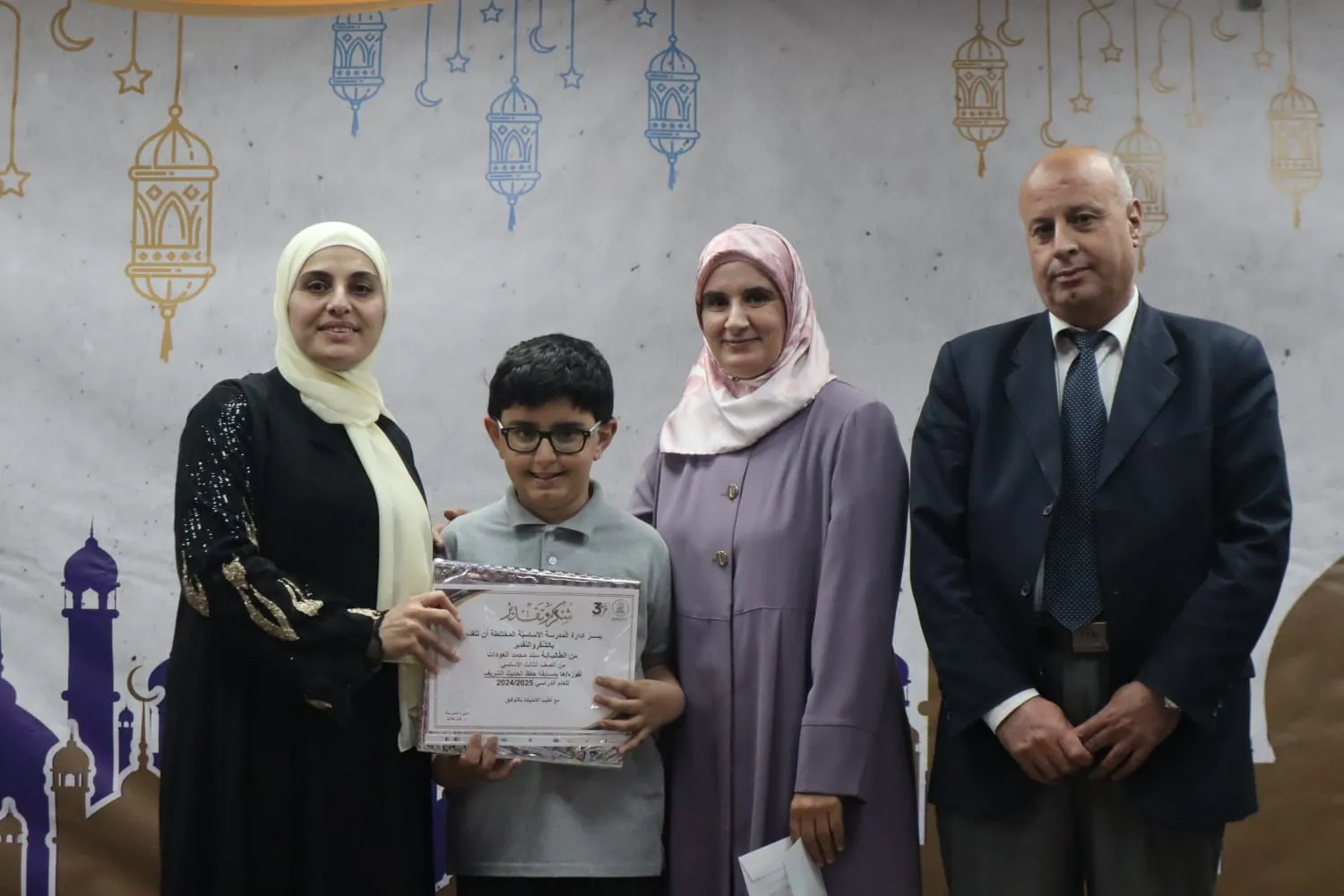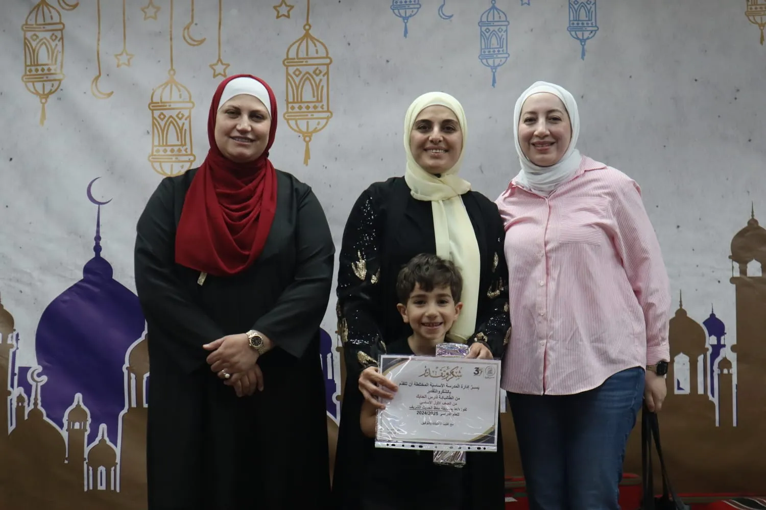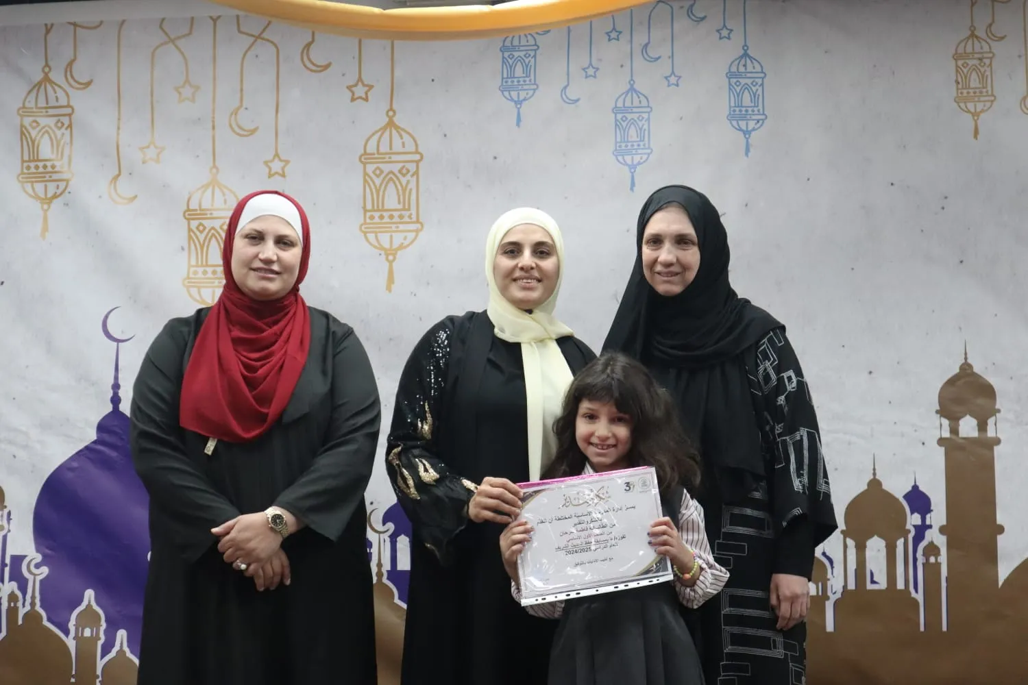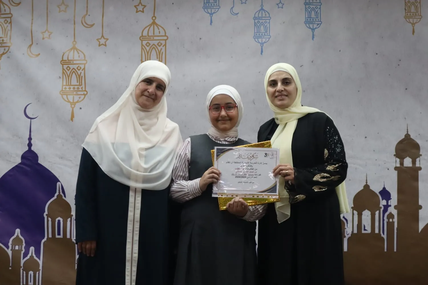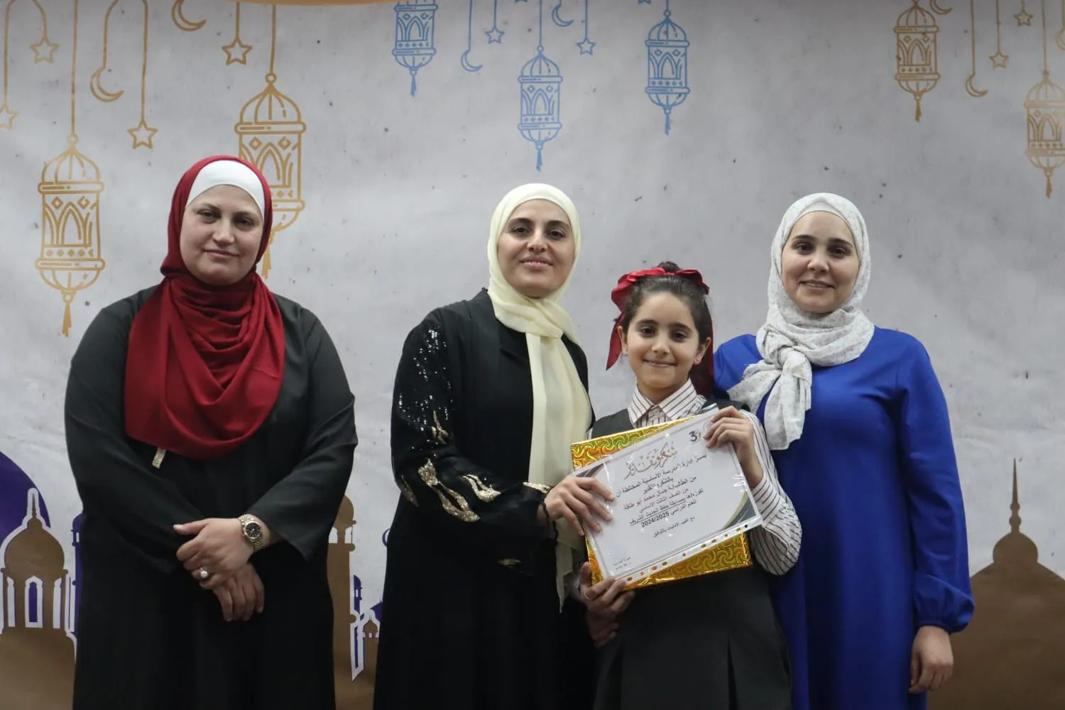وكرمت مديرة المدرسة الطلبة الفائزين والذين بلغ عددهم في مسابقة حفظ الحديث النبوي الشريف 157 طالبا وطالبة و 4 طلبة في مسابقة مقرئ العمرية..
