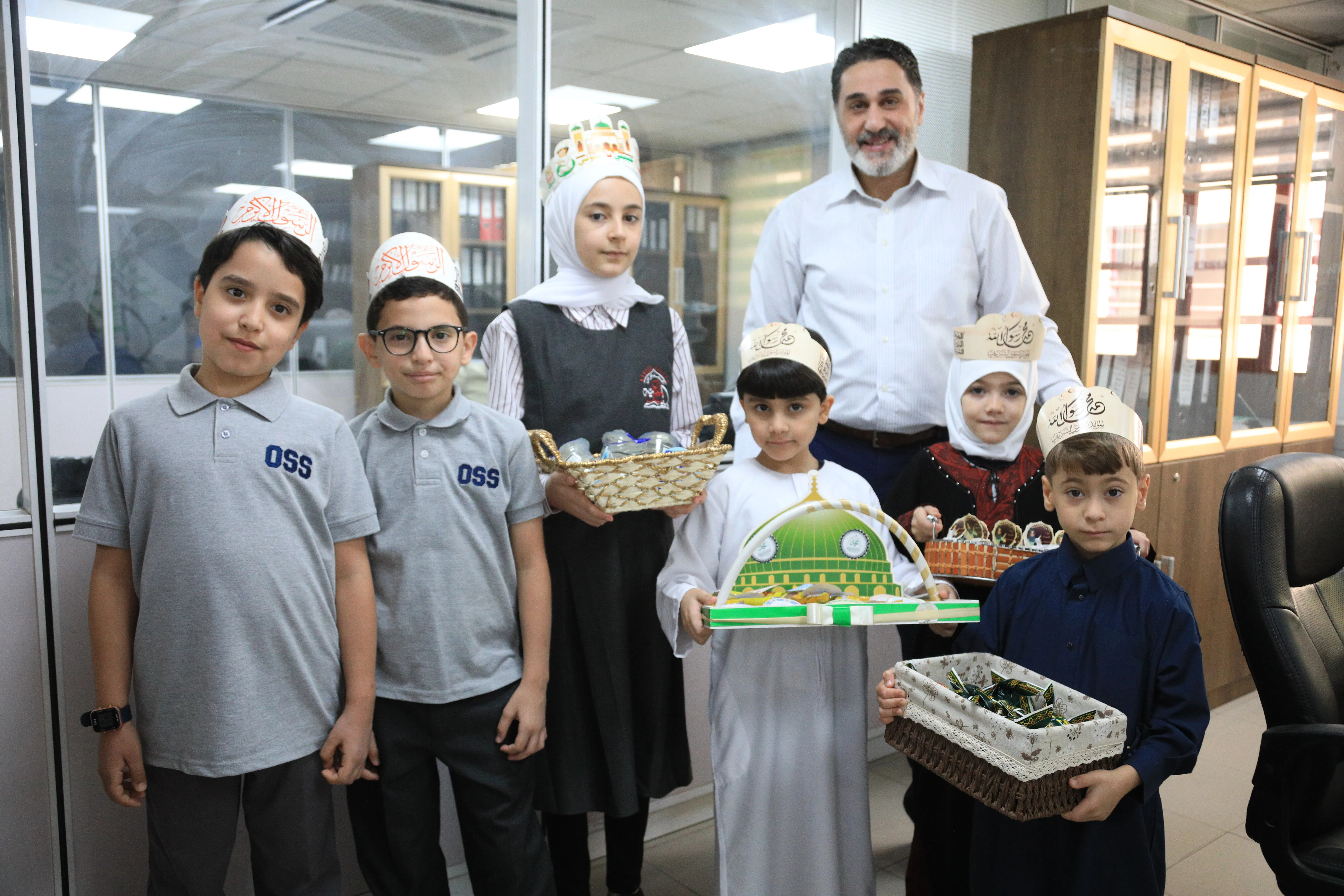 في أجواء مليئة بالفرح والروحانية، زار طلبة الروضة والأساسية الإدارة العامة، وكانت بداية جولتهم من مكتب المدير العام للمدارس العمرية الدكتورة هيام رمضان عيسى، التي أعربت عن سعادتها البالغة باستقبالهم ومشاركتهم هذه الذكرى العطرة. وجال الطلبة بعد ذلك بين أقسام الإدارة حاملين بهجة المولد النبوي الشريف ﷺ، ناشرين المحبة والاحتفاء بين الموظفين