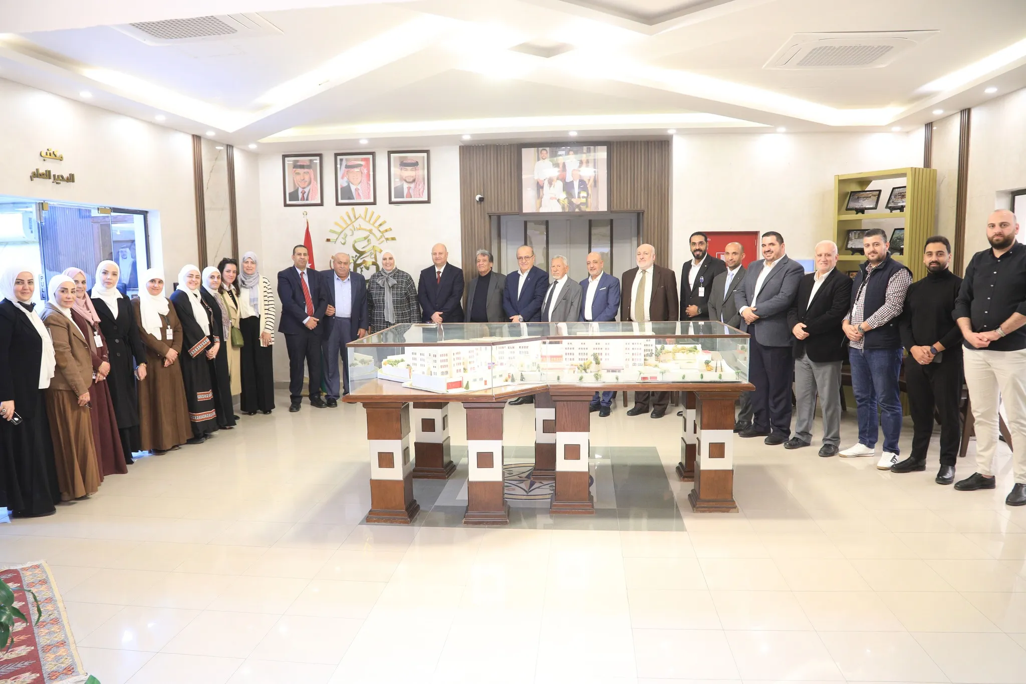 تشرفت الزيارة بمشاركة معالي المهندس وجيه طيب العزايزة، سعادة المهندس خليل عطية، السيد أبو يزن درويش دعبس، السيد خليل النمر – أحد ممثلي الشركات المساندة في عملية الإنشاء، المهندس نزيه نزال – من الشركاء في بناء صرح العمرية، المهندس أحمد عيد .
