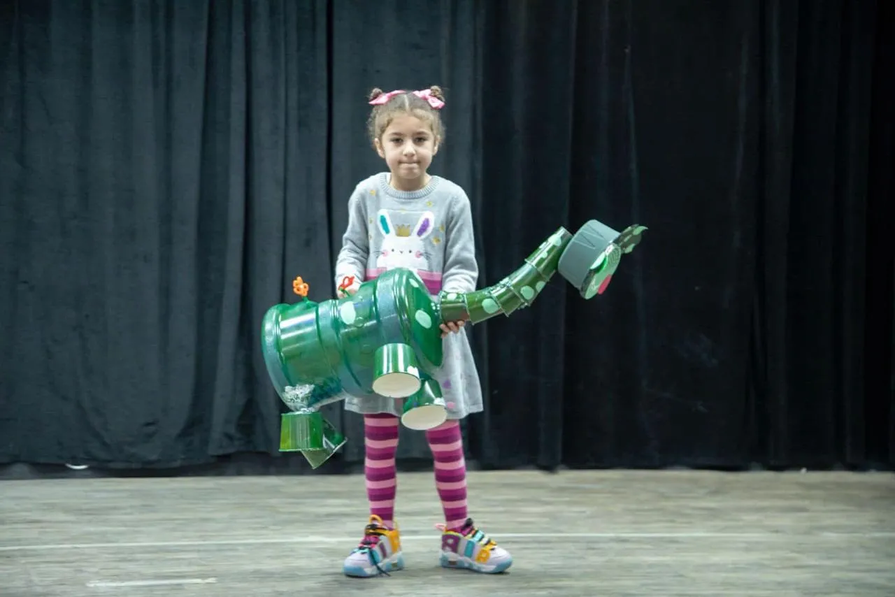 وعرض في المعرض منتجات الأطفال والتي تبرز إبداعاتهم في استخدام مواد معاد تدويرها، بهدف تعزيز الوعي والمسؤولية البيئية بين الأطفال والمجتمع المدرسي.