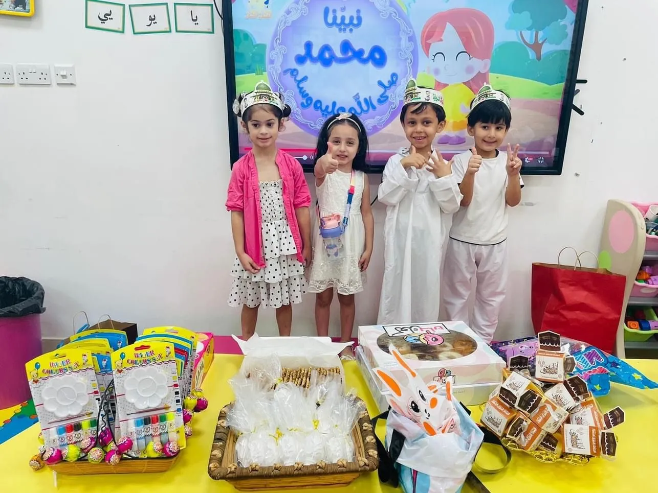 With hearts filled with joy on the occasion of the Prophet Muhammad’s Birthday, Omareyah Kindergarten held a special gathering to honor part of his noble traditions. The celebration concluded with a simple ceremony organized by the kindergarten team, featuring a puppet show, a theatrical play, competitions, and prizes—all centered around the life and exemplary teachings of the Prophet Muhammad (peace be upon him).